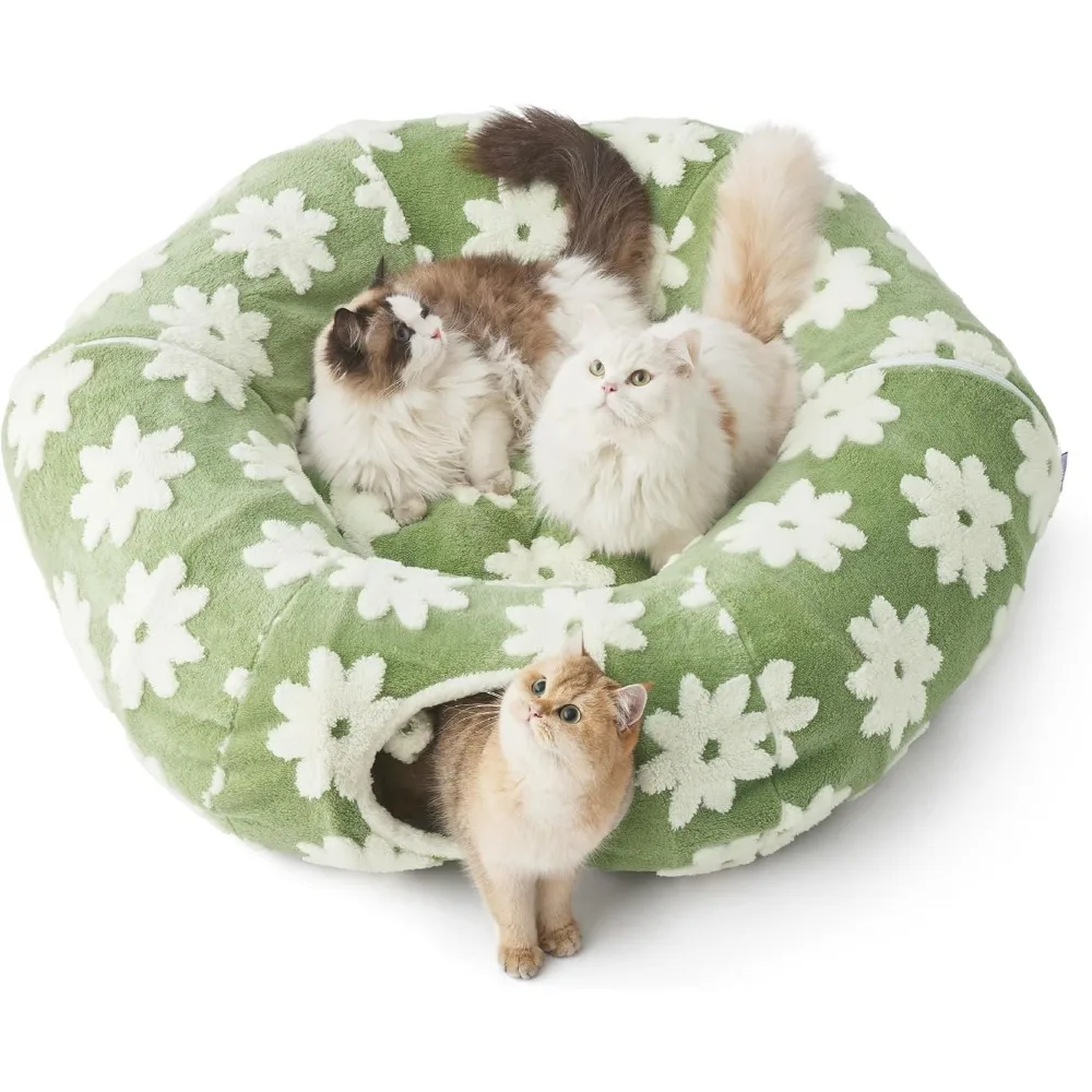Lesure Large Cat Tunnel Bed – Cute Donut Bed for Indoor Cats with Washable Circle Cushion, Round Pet Peekaboo Cave Toy for Multi